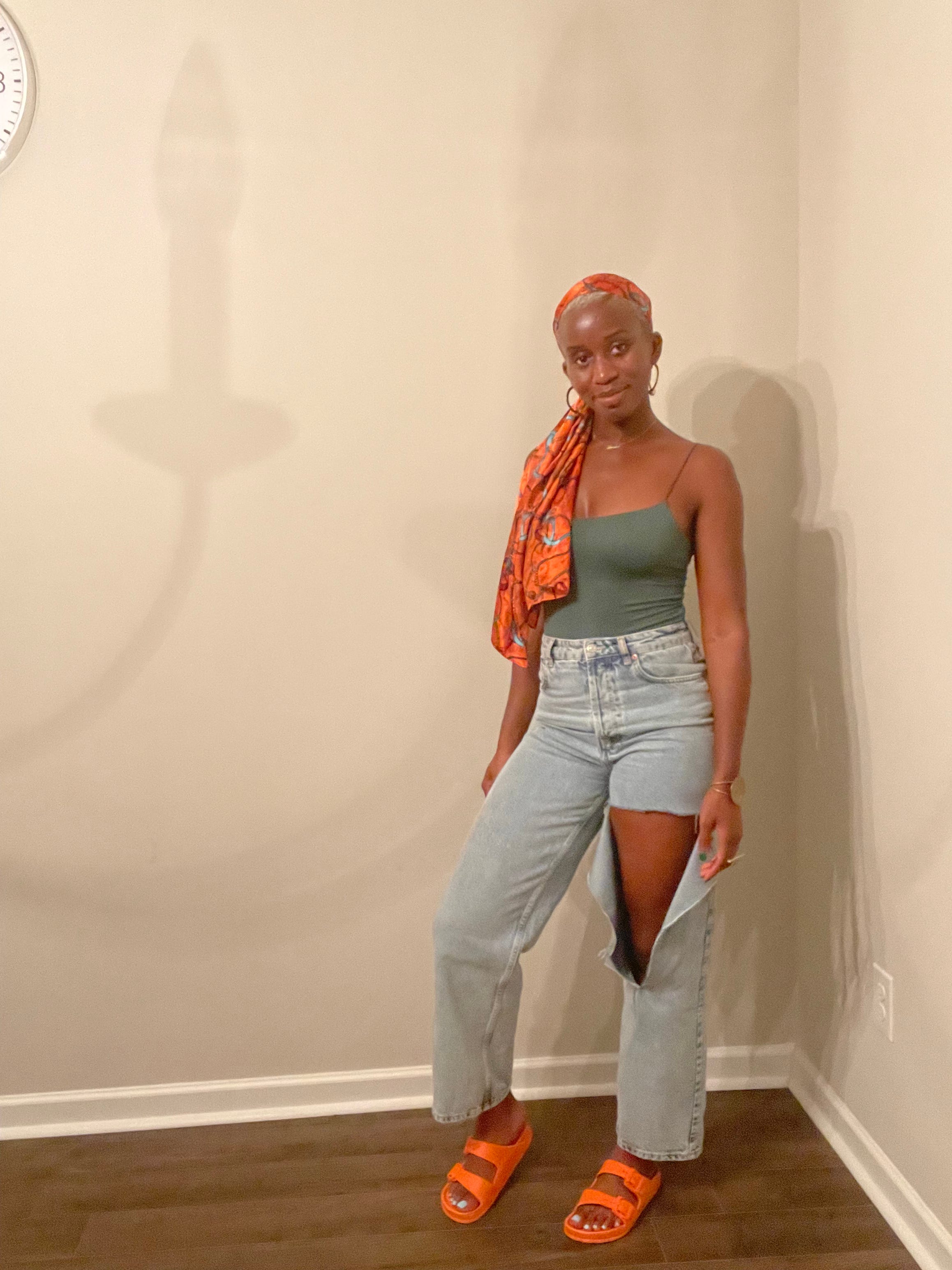 it’s been over 100 degrees in Atlanta. Bodysuits have been a closet staple, giving easy and classic each time. These are my favorite jeans. And of course my orange sandals from the hood staple Rainbow, another place where black girls turn water into wine.